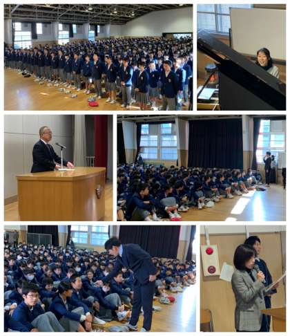 生活指導部からは冬休みの諸注意、アナ雪エンディング曲を歌っている卒業生中元みずきさんの諦めない心と、「命と信頼」のお話がありました。