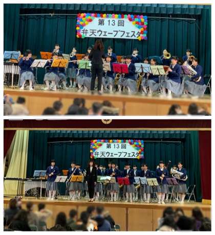 1月26日(日)、弁天小学校で「弁天ウェーブフェスタ」が行わられ、吹奏楽部とダンス同好会が出演しました。