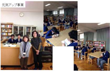毎日昼休みには、ボランティアの皆さんのご協力を得ながら、図書館開放をしています。常時20人位の生徒が利用しています。