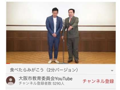 大阪市と吉本興業株式会社との包括連携協定の取り組みの一環として、ミルクボーイによる歯みがきの大切さを子どもたちにも分かりやすく楽しく伝える動画「食べたらみがこう」を作成しています。ご家庭のみなさまでご視聴をいただき、歯みがきを実践いただきますようご案内いたします。