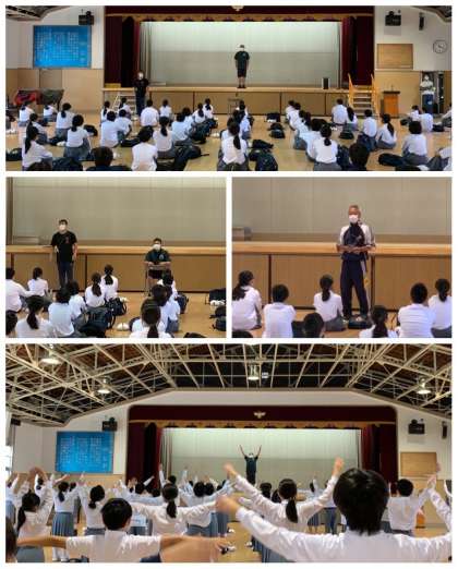 今日は、まず講堂で分散グループごとに学年集会を行いました。授業開始の挨拶の仕方や教室での姿勢や行動について、76期生として大事にしたいことの説明がありました。