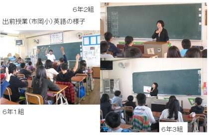 本日期末テスト2日目。午後から市岡小学校に出前授業に行きました。5時間目、3クラスとも英語授業。担当は諸岡・後藤・坂田先生がフォニックスの音読みを教えました。最初は緊張気味だったが、児童たちも最後は慣れてきた様子でした。