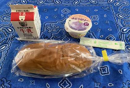 今日は、黒糖パン&牛乳とぶどうゼリーでした。