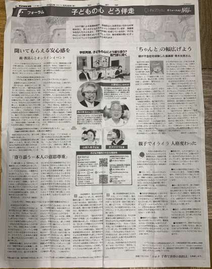 6月28日(日)、朝日新聞オピニオンのページに「フォーラム 子どもの心