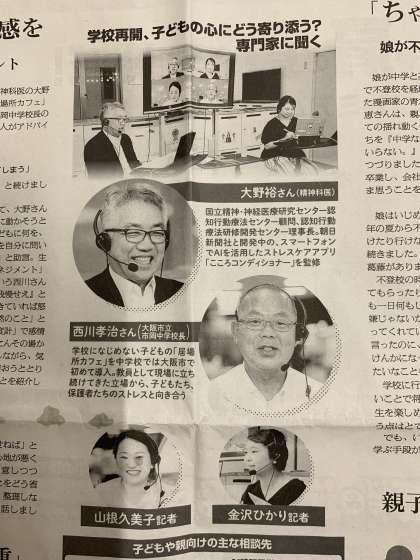 どう伴走」という紙面に本校の西川孝治校長先生と精神科医の大野裕さんの対談が掲載されました。