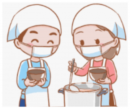 生徒の皆さんは、ランチョンマットの準備を、給食当番の人は「エプロン・三角巾・マスク」の準備を必ずしてください。