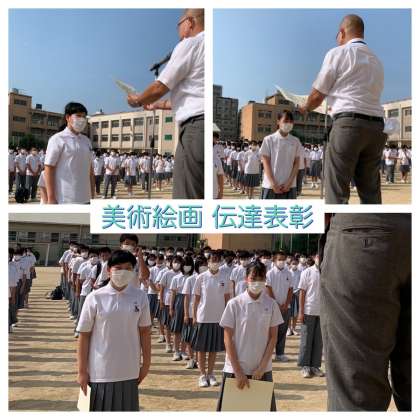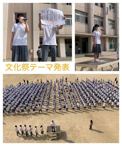 全校集会 7/20 公開日 2020/07/21 更新日 2020/07/21 お知らせ 7月21日(月)、令和2年度の初めての全校集会を行いました。これまで全校生徒が一同に会することができませんでしたが、今回初めてグランドで実施することができました。 短時間できびきびと行動してくれた2,3年生に見て、1年生もきっちり整列ができてとても良かったです。 今回は、令和2年度生徒会の認証式、美術絵画の伝達表彰、校長先生のお話、生徒会執行部から文化祭テーマ発表を行いました。 いいね(0)