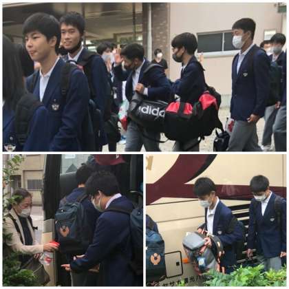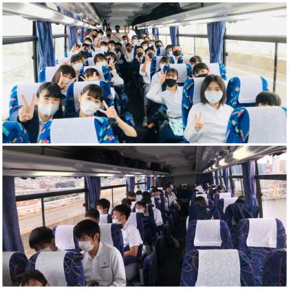 バス内で音楽を聴きながら楽しそうな子どもたちの様子です。