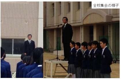 昨日の月曜日が「成人の日」で休みであったため、本日全校集会を行いました。体調不良で欠席連絡のあった生徒も数人いますが、登校してきた生徒は時間とおり(8時30分まで)整列完了できていました。