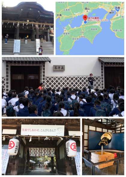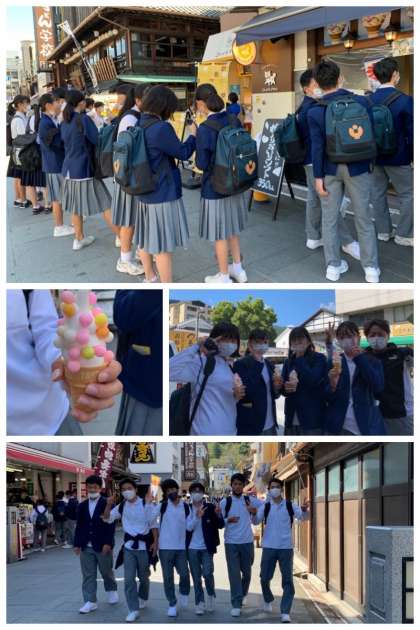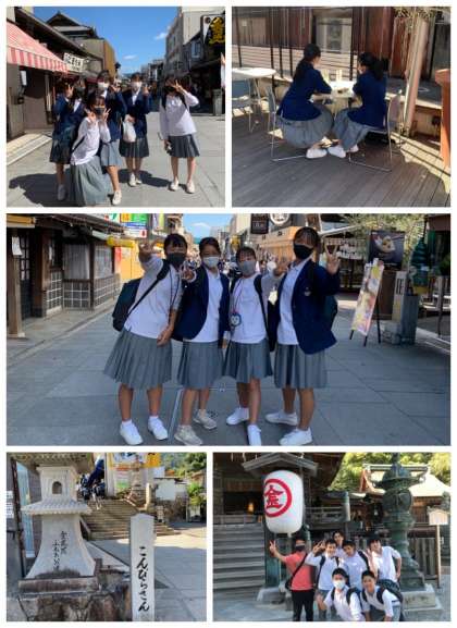 琴平自由散策の様子です。 食べ歩きやお土産購入を楽しんでいます。