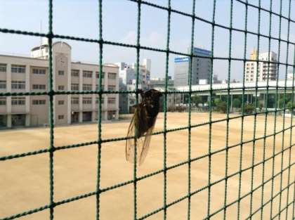 音楽室のすぐそば、3号館の運動場側に張られたネットにとまっていました。