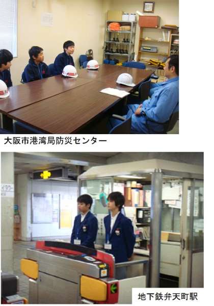 大阪市港湾局防災センター、地下鉄弁天町駅、田中保育所、港田中郵便局、市岡小学校の様子です。