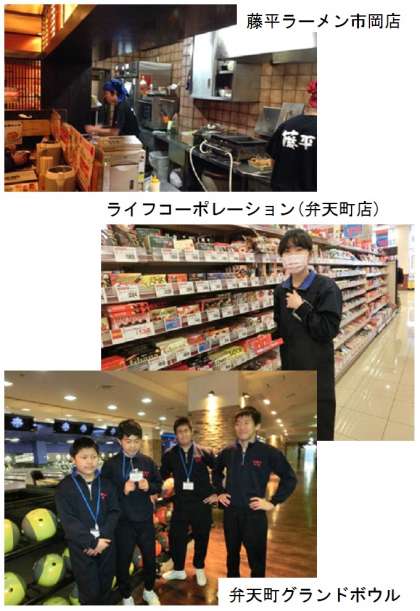 藤平ラーメン市岡店、ライフコーポレーション(弁天町店)、弁天町グランドボウル、関西スーパー市岡店、杵屋弁天町オーク店の様子です。