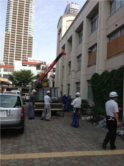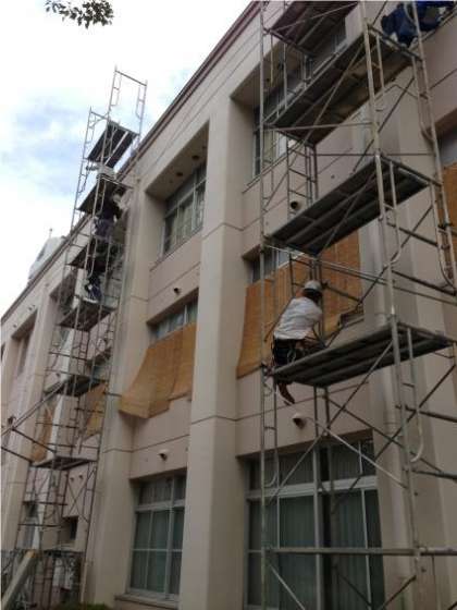 いよいよ、1,2年生普通教室に設置される空調工事が本格的に始まりました。まずは、足場作業からです。3週間での完成予定です。