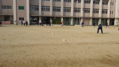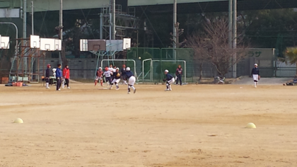 本日はソフトボール部とラグビー部が市岡中のグラウンドでそれぞれ合同練習を行っています。