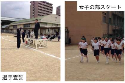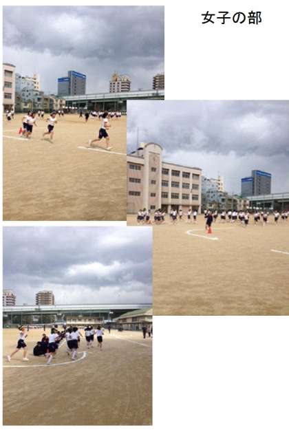 1週750mのコースを作り、1,2年生同時にスタートします。第1レースは女子からです。