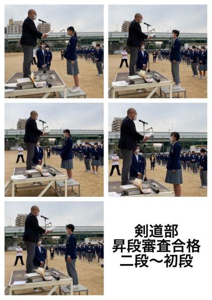 剣道部の昇段審査で見事、二段・初段の生徒の紹介です。