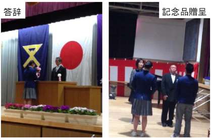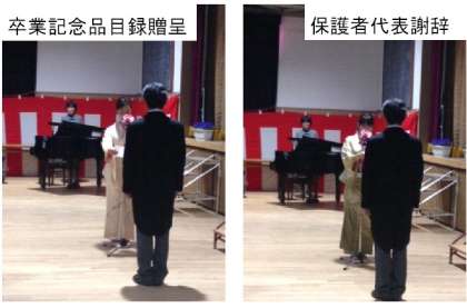 その後、保護者から卒業生へ記念品として、「ケース入り印鑑」と「証書ホルダー」が送られ、また、学校に「ミストシャワー」2基が贈呈されました。最後に保護者代表から謝辞をいただき、第68回卒業証書授与式が無事終了しました。