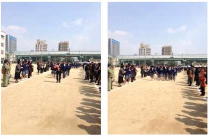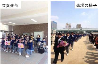 保護者、在校生の作った人垣の中を、吹奏楽の演奏で卒業生は巣立っていきました。