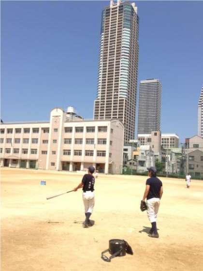 今日も35度を上回る猛暑な中、グランドでは野球部が、体育館ではバレーボール同好会が頑張っています。