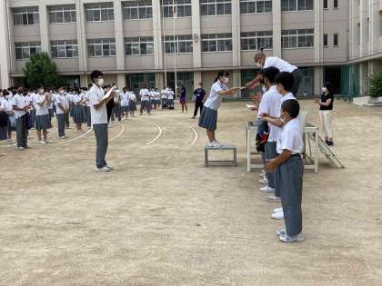 また、「大阪市卓球個人選手権大会」で3位になった卓球部の生徒の表彰もありました。