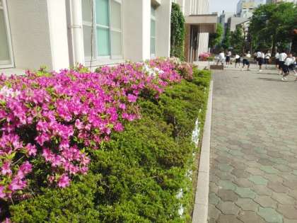 満開のツツジ(4月30日) 公開日 2015/04/30 更新日 2015/04/30 お知らせ 1号館(正門を入ってすぐの校舎)の花壇の写真です。ツツジが満開になりました(写真上)。そのわきでは、女子バスケットボール部が活動しています(写真中)。 新たに1年生をくわえ、校内ではクラブ活動が活発に行われています。グラウンドでソフトボール部、ラグビー部、野球部が活動しています(写真下)。じつは写真の奥のほう、わたり廊下では男子バスケットボール部、吹奏楽部も活動しています。見つけられますか? いいね(0)