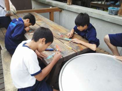 カッター訓練をしていないクラスは、若狭塗り箸作りを行いました。箸袋には絵柄や名前などを描きました。みんな、なかなかの出来映えになりました。作った箸は持ち帰りますので、また作品を見てあげて下さい。
