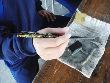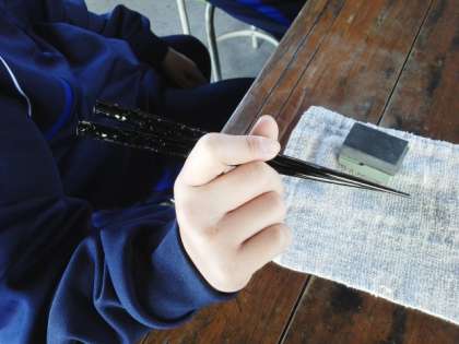 若狭塗り箸を磨く前と磨いた後です。綺麗な模様が磨くことによって浮き出てきます。