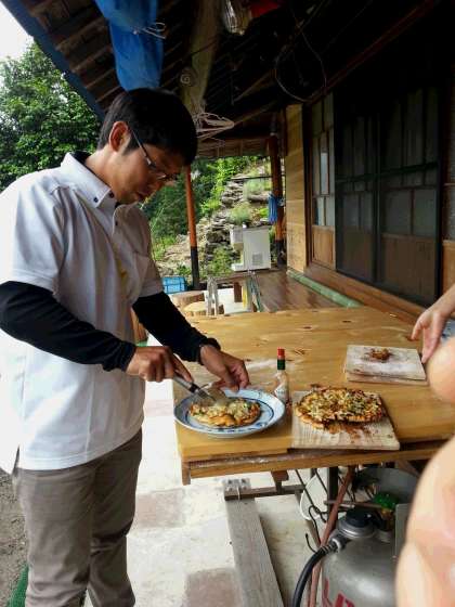 みんなでピザを作って食べました。あとから来る先生のためにピザを残してくれていました。