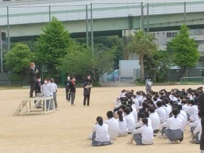 今週も時間通りに全校集会が始まりました。先生が前に立って、「早くしなさい」「並びなさい」とは言いません。生徒の皆さん自身が自分で考えて行動しています。