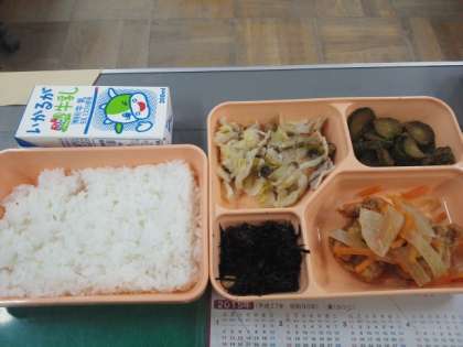 今日は、鶏肉の南蛮漬けと豚肉と野菜の炒めものでした。南蛮漬けは生徒達にとって、少し酸っぱかったようですが、ヘルシーな給食でした。