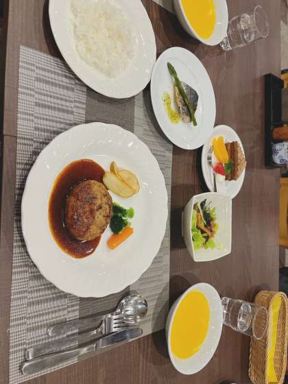 栂池高原のホテルに到着後、入館式を経て、豪華なディナーをいただきました。