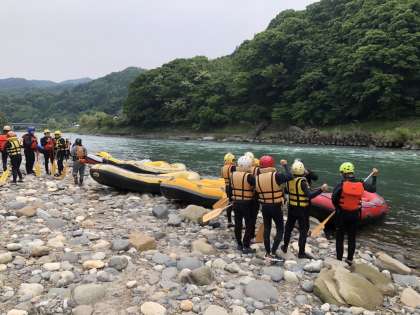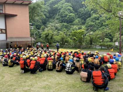 2日目の午前中は、みんなが楽しみにしていた犀川でのラフティングです。