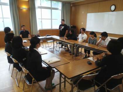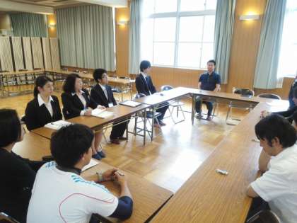 今日で、教育実習期間が終了しました。写真は、多目的室で最終反省会をしているところです。