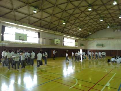 1年生は1泊移住に向けて、集団行動の練習をしています。
