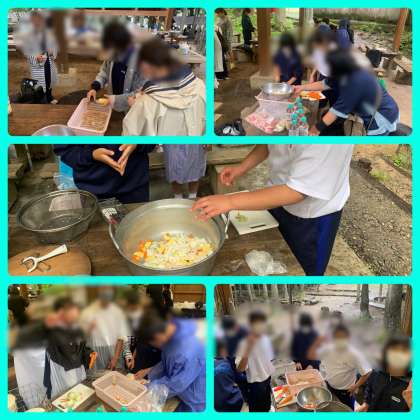 ◎美味しいカレーの作り方 ・米を洗い、食材を切ります。 ニンジン大きすぎると煮えませんよ〜。