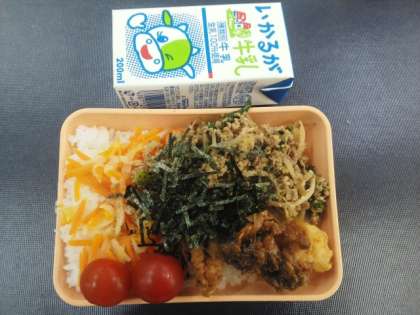 今日はビビンバでした。右側の写真のようにご飯の上にのせてから食べた人と、別々食べた人とに別れたとは思いますが、なかなかのお味でした。