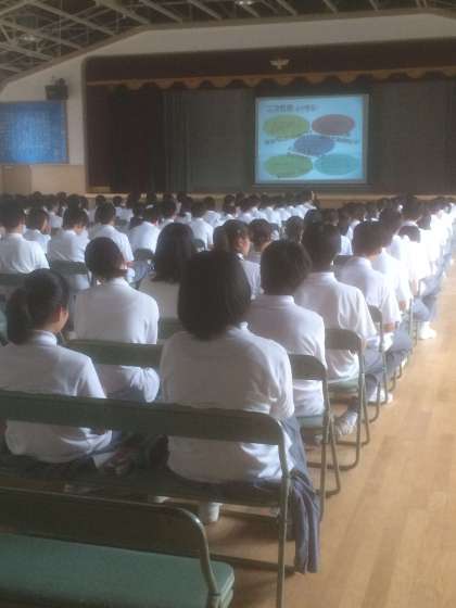 保健室の上村先生が講師となり、たくさんの事例をあげて予防のために自分ができることを一緒に考えていきました。