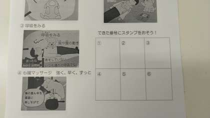 人形、AED、スタンプカードなど、工夫された実物教材を用いて授業を展開しました。