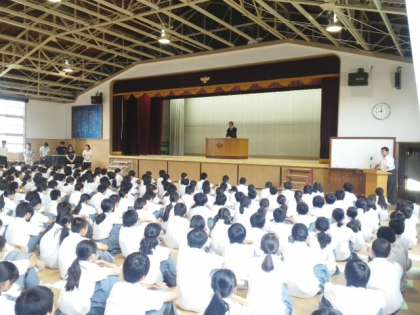生徒指導主事からは、情報機器や交通関連、水辺周辺、お祭りなど様々な場面において正しい判断を持って行動し、気の緩みからくる事故に巻き込まれることの無いよう、命を大事にして欲しいとのお話しがありました。また、岩手のいじめ問題による自殺問題にも触れ、悩み事やシンドイことがあっても、一人で悩まず家族や先生、友達に相談することも大切だと伝えていただきました。