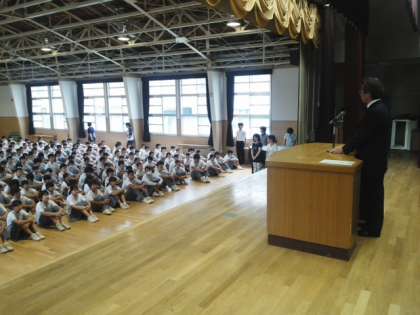 校長先生からは、夏休み中に『一ミリの損失』に陥らず、『一ミリの努力』を日々積み重ね、さらに人として成長させ、有意義な生活を送って欲しいというお話をしていただきました。