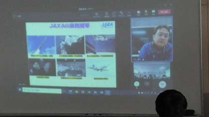 種子島宇宙センターと市岡中学校をリモートでつないでいただき、JAXAのお仕事についてお話をいただきました。