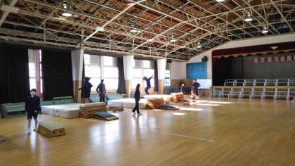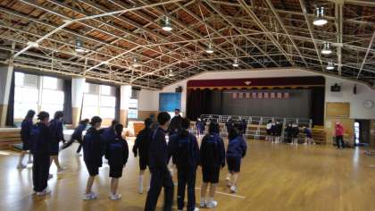 2年生の体育の授業では、講堂で跳び箱をしています。