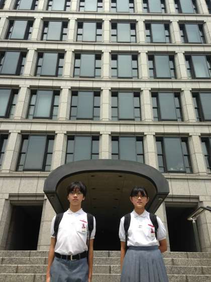 生徒会役員である副会長・友森聖羅さんと3年執行委員・中嶋倫太郎くんの2名が、子ども市会に参加してまいりました。