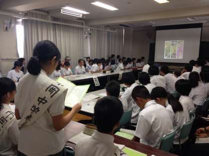 8月26日、生徒会役員6名が生徒会交流会に行ってきました。生徒会交流会では、3ブロック各中学校の生徒会役員が集まって、活動報告を行います。