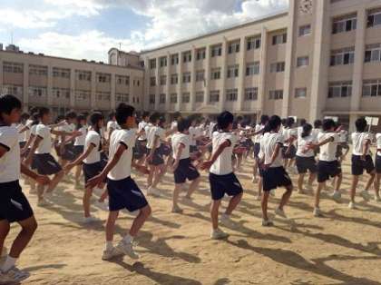 開会式の退場、体操、入場行進の説明と練習をし、座席を確認して少し休憩。