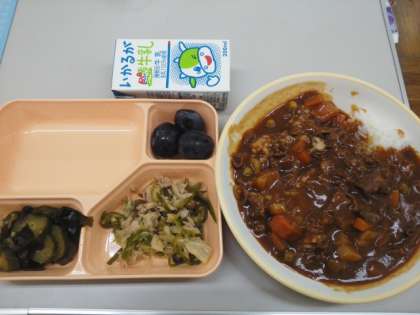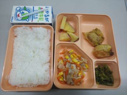 今日は、鶏肉のカレー風味焼きにベーコンと野菜のソテー、さつまいものレモン風味煮でした(^-^;)