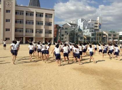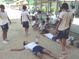 そして組立体操の練習も行いました。太鼓の音に合わせて駆け足で自分の場所に移動し、次々と演技を行います。徐々に完成度も高まってきています。