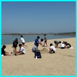 浜辺では、砂で何かが作られています。 何ができあがるのでしょうか?