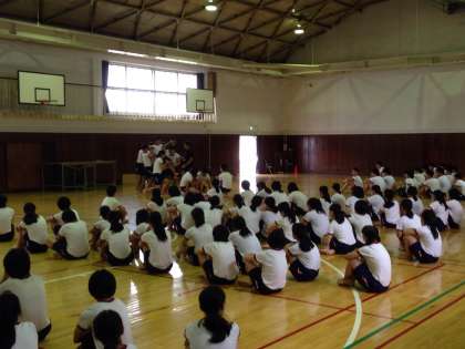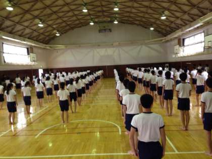 今日は3年生が体育大会の組み立て体操の学年練習を行いました。しっかりと準備体操を行ってから様々な技を練習していきます。どんな技が見られるかは、本番を楽しみにしていて下さい。これから毎日練習していきますので、体調管理のほど宜しくお願いします。